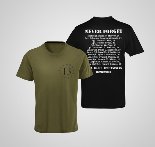 NEVER FORGET THE 13 T Shirt / 13 Fallen Soldiers / Kabul Memorial