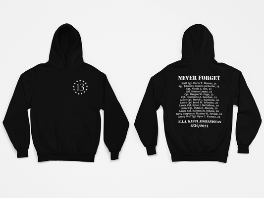 NEVER FORGET / 13 Fallen Heros / Kabul Memorial / Impeach Biden / US13/ Til Valhalla HOODIES