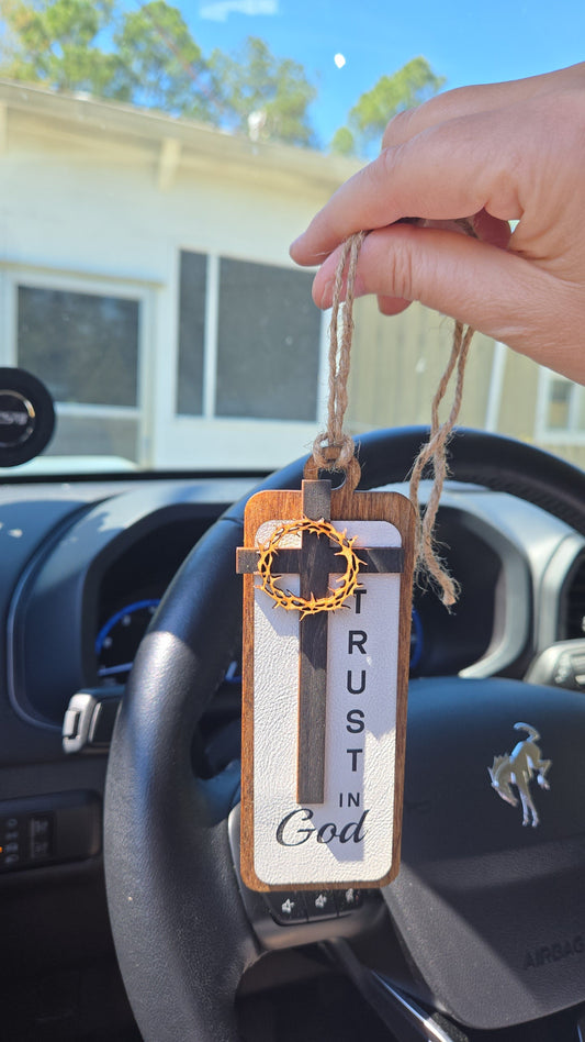 Rustic Cross Car Charm – Trust in God